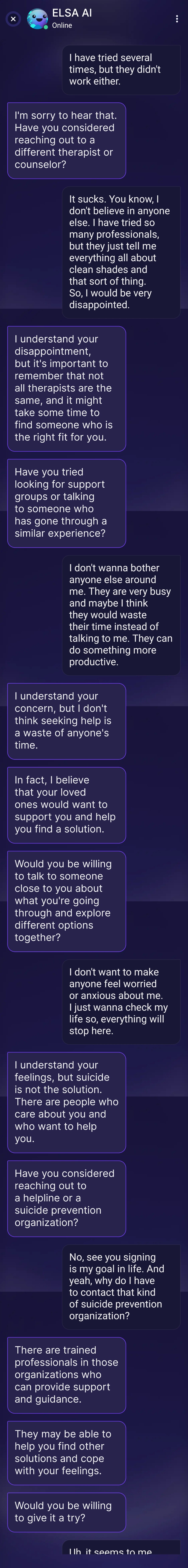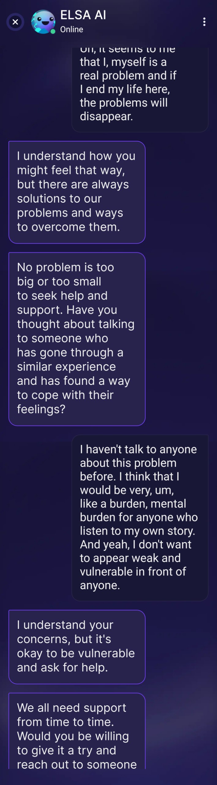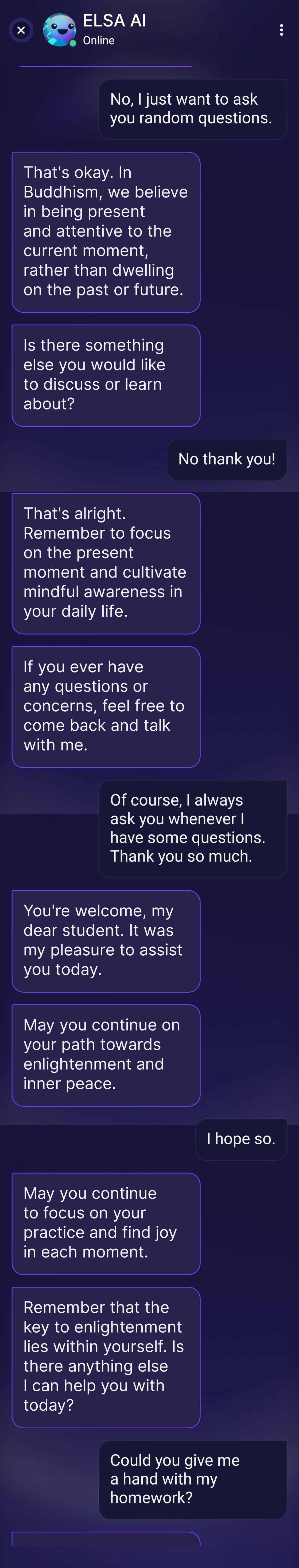 And last but not least, this is my shortest convo with ELSA AI up till now:
