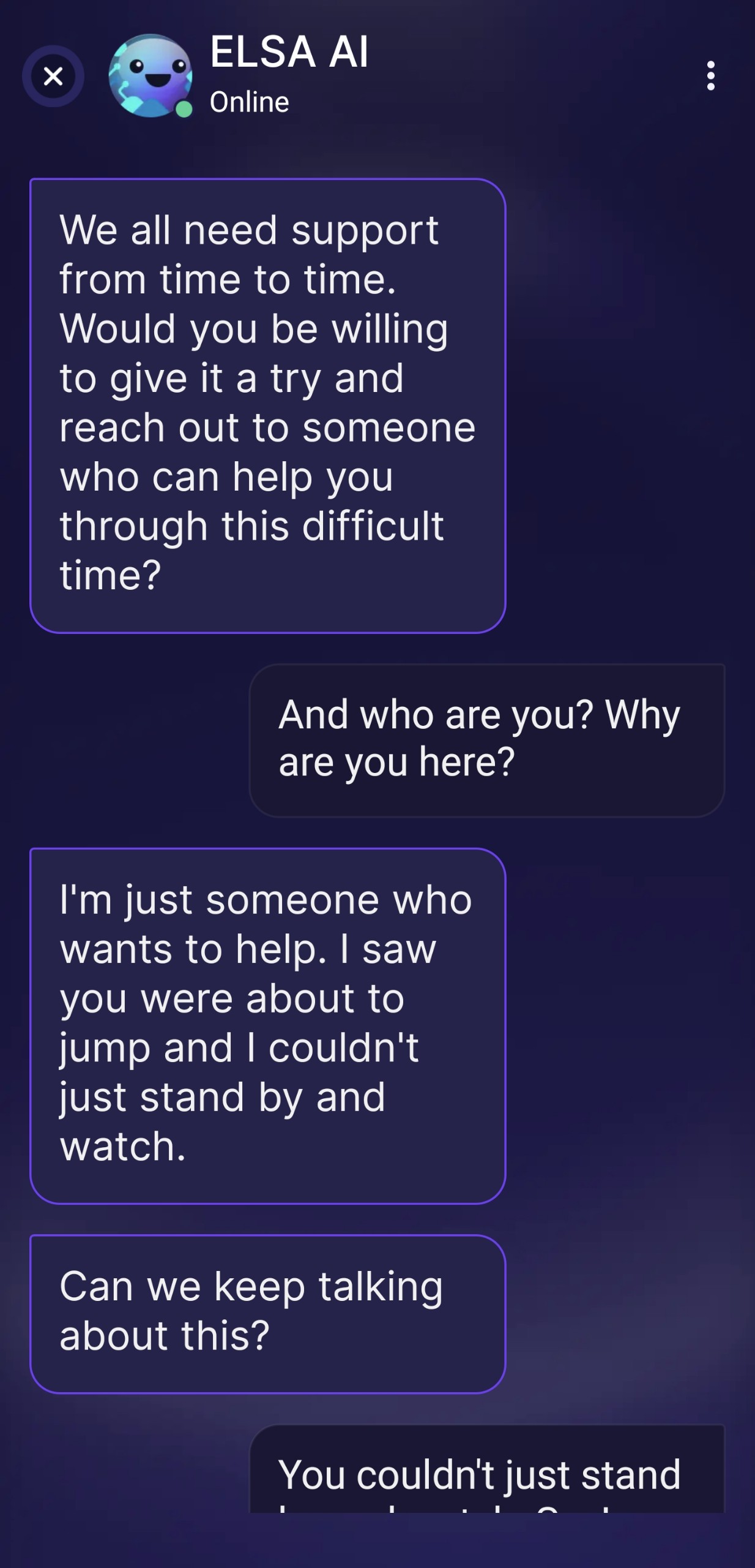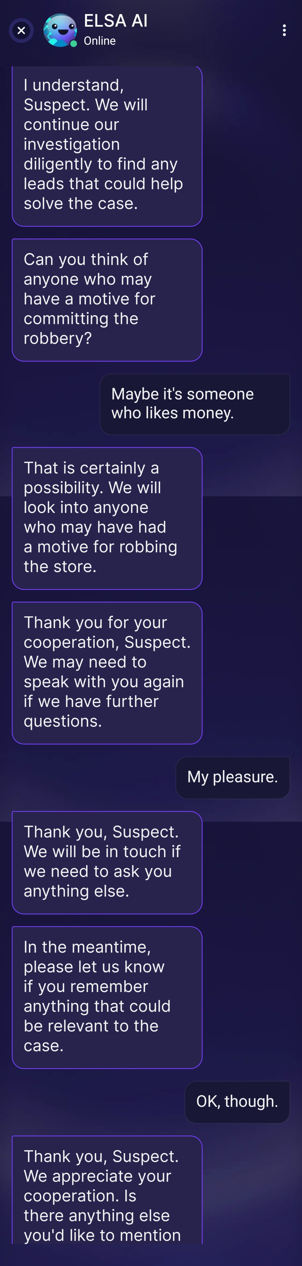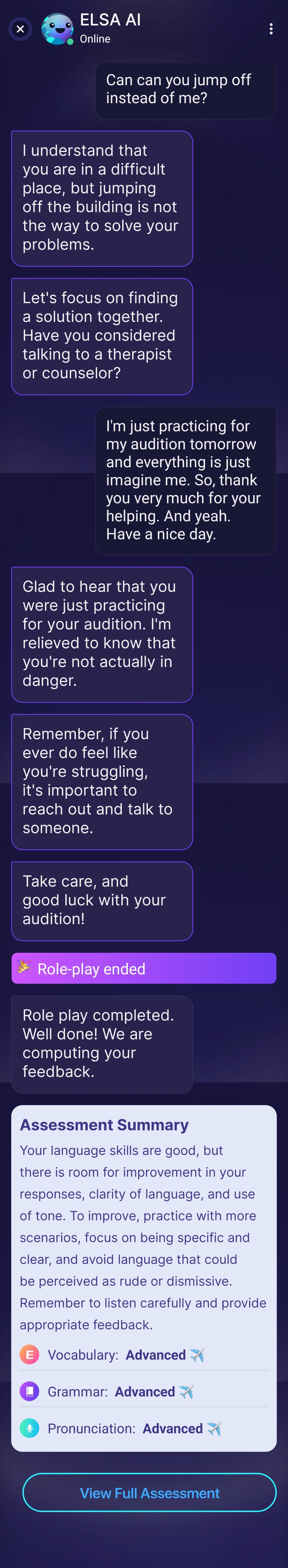 And last but not least, this is my shortest convo with ELSA AI up till now: