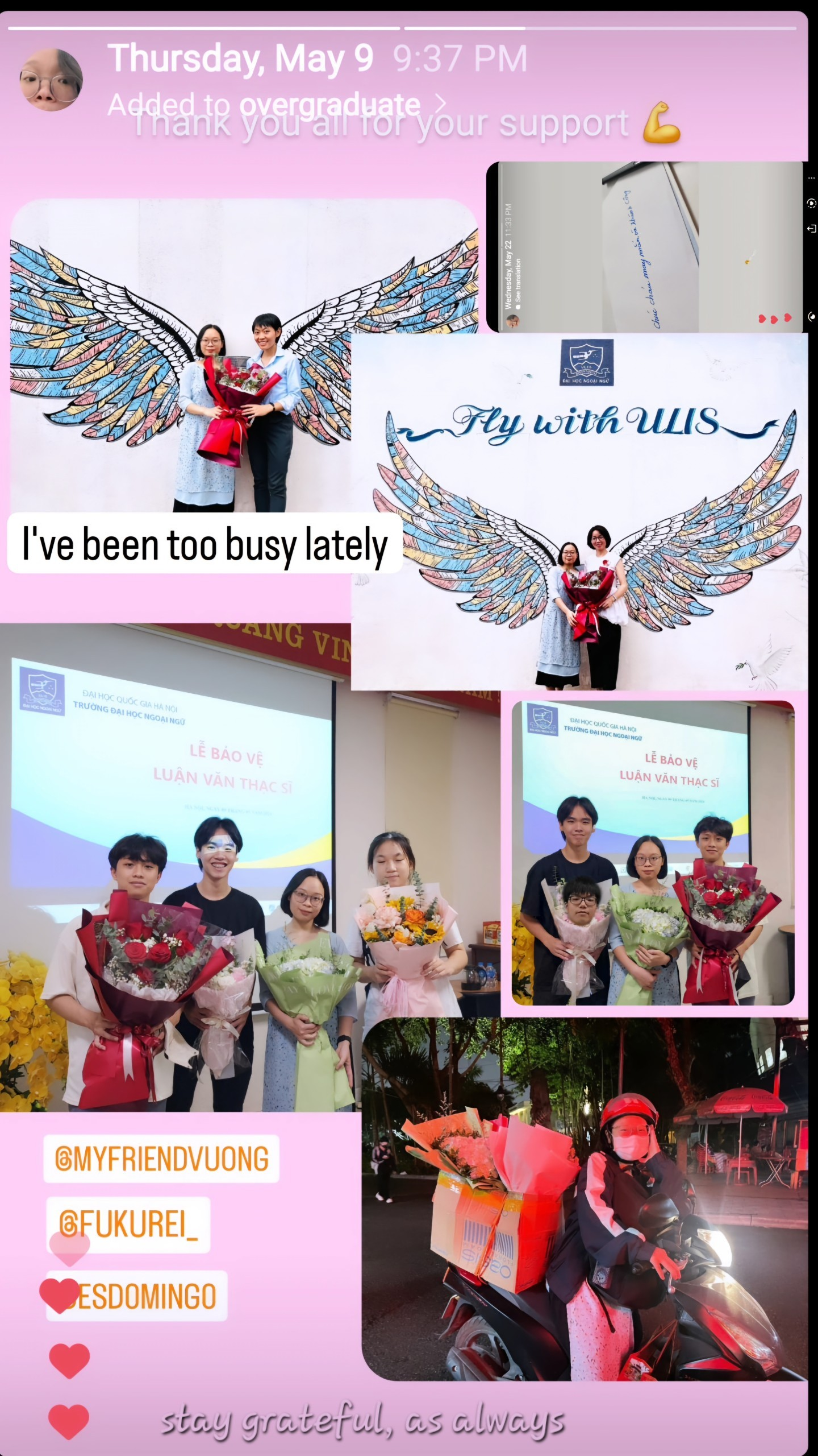 I still remember right after I was praying to my paternal grandpa for my early graduation, the announcement for our D-day came. Though I couldn’t see my paternal grandparents in person, they’re always beside me on such special occasions. And I guess my maternal grandparents want to see me holding a PhD degree soon, so I’m on my way toward that goal despite my folly. I hope my research will come in handy, not something written on paper.